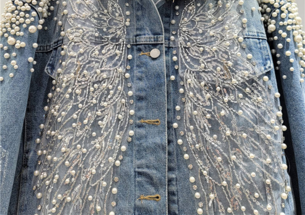 Menambah Hiasan Tambahan:Untuk menyerlahkan jaket tersuai anda, pertimbangkan untuk memasukkan hiasan tambahan. Tampalan dengan reka bentuk atau rumbai yang tersendiri boleh melengkapi rhinestones dan memperkenalkan tekstur tambahan dan tarikan visual. Nilaikan bagaimana elemen ini selaras dengan reka bentuk rhinestone anda dan pilih kepingan yang meningkatkan estetika keseluruhan.